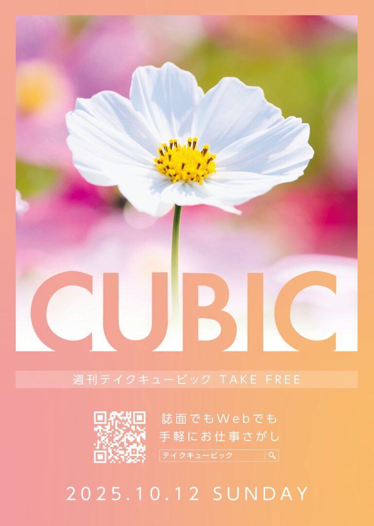 CUBIC[愛媛版] 10/12号 vol.1152が発刊されました! 2025/10/12 お知らせ 『週刊テイクキュービック[愛媛版]』10/12号が発刊されました。 是非本誌・WEBともに、お仕事探しにご利用ください♪ 掲載期間: 2025/10/27 前の記事