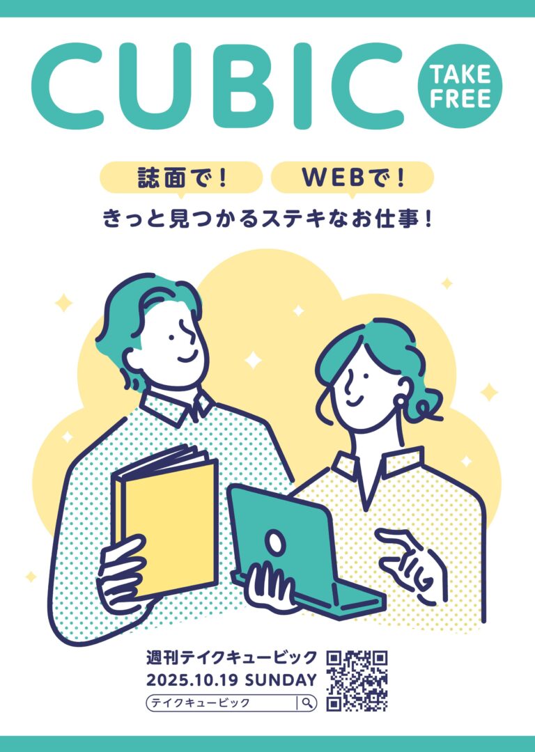 CUBIC[愛媛版] 10/19号 vol.1153が発刊されました! 2025/10/19 お知らせ 『週刊テイクキュービック[愛媛版]』10/19号が発刊されました。 是非本誌・WEBともに、お仕事探しにご利用ください♪ 掲載期間: 2025/11/3 前の記事