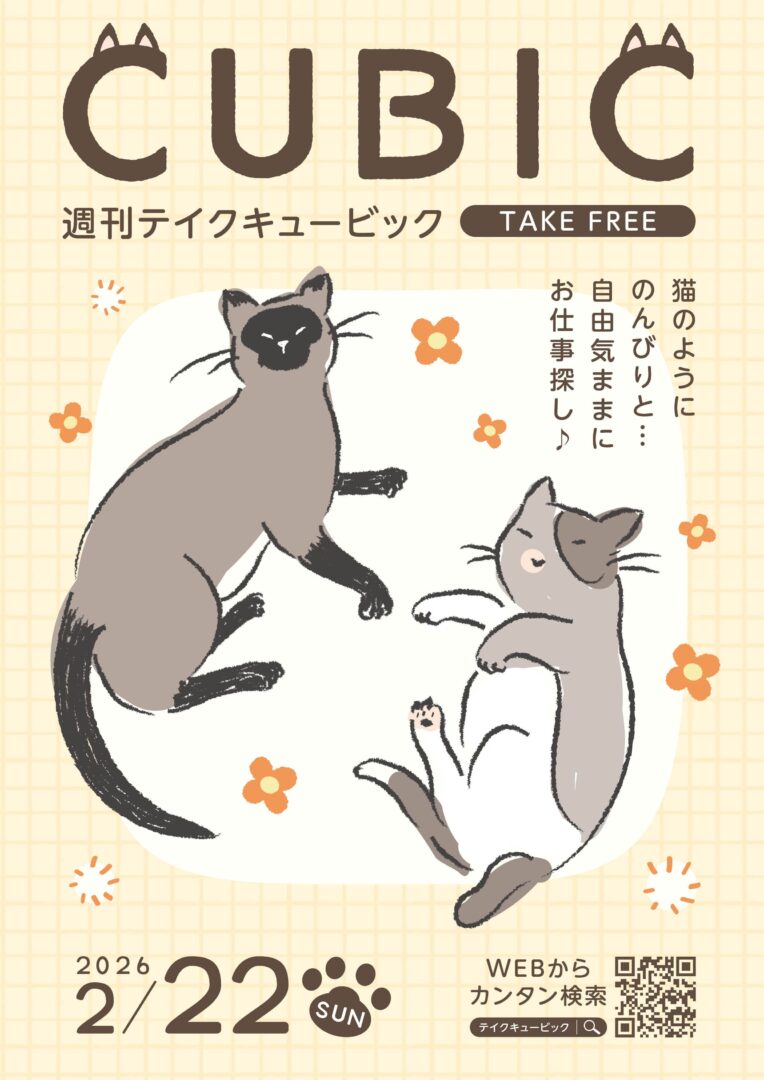CUBIC[愛媛版] 2/22号 vol.1171が発刊されました! 2026/02/22 お知らせ 『週刊テイクキュービック[愛媛版]』2/22号が発刊されました。 是非本誌・WEBともに、お仕事探しにご利用ください♪ 掲載期間: 2026/3/8 前の記事