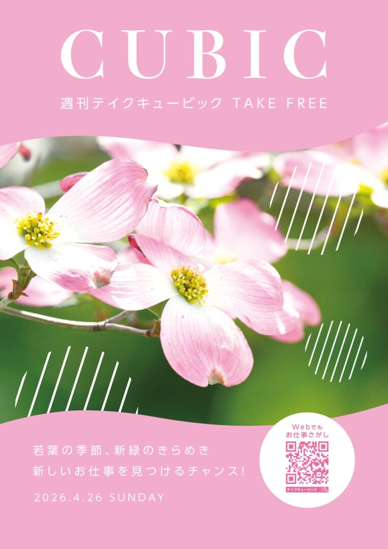 CUBIC[愛媛版] 4/26号 vol.1180が発刊されました! 2026/04/26 お知らせ 『週刊テイクキュービック[愛媛版]』4/26号が発刊されました。 是非本誌・WEBともに、お仕事探しにご利用ください♪ 掲載期間: 2026/5/11 前の記事